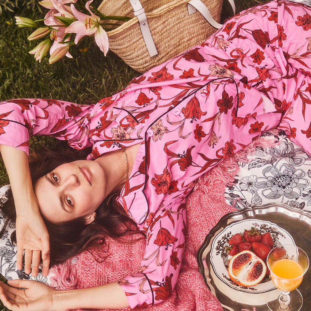 Colony Pink Peonies Silk Satin Pajamas